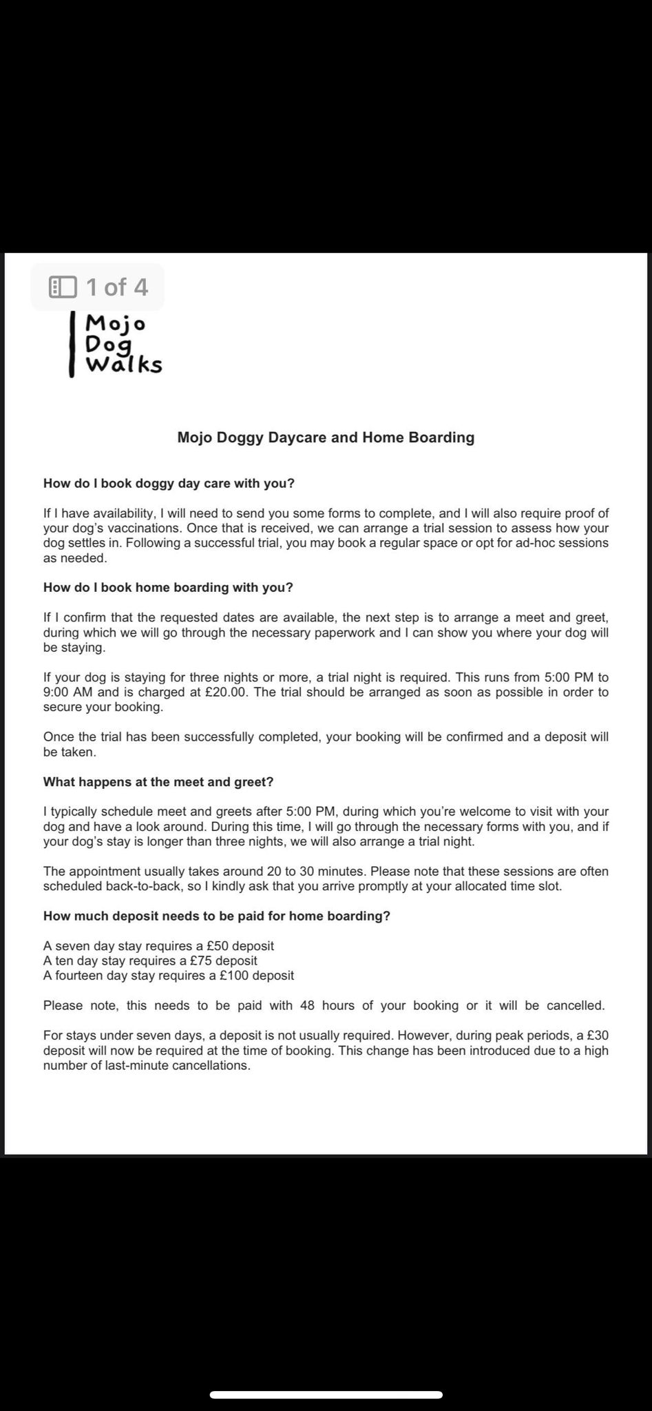 Welcome to The Mojo Dog Walks and Home Boarding , your dog's home away from home dog boarding house. Where we go the extra mile to provide a loving and comfortable environment.